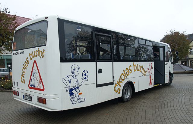Kā pastāstīja Andris Šteinbergs, kas pārstāv AS «Ferrus», šis konkrētais skolēnu autobuss ir atceļojis no Francijas, bet, apbraukājot Latvijas pilētas un pagastus, ražotāji ņēmuši vērā arī iedzīvotāju, potenciālo pasažieru vēlmes. "Latvijas variants" būs gan mazliet ietilpīgāks, gan apsildāmāks, kā arī domāšot par skaņas izolāciju. Firma ieplānojusi piedalīties konkursā, kur Šveicas projekta ietvaros valsts gatavojas iepirkt skolēnu autobusus.