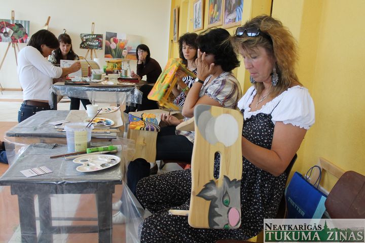 – Pilnīgi noteikti. Tā būtu pozitīvā blakne šim visam, ja kāds izlasītu un padomātu – es arī tā varu. Mēs daudz neizdarām, jo domājam, ka nevaram, bet tā nav. Protams, ir jārespektē tehnoloģija, piemēram, krāsu jaukšanas pamati, bet, ja cilvēks, kam nav šādu zināšanu, vēlas kādu priekšmetu apgleznot, šī nezināšana nevar būt par šķērsli izmēģināt. Un ja kāds šaubās, aicinu piektdien, 22. augustā, 14.00 atnākt uz mūsu izstādes atklāšanu galerijā «Durvīs» un apskatīties. Vienlaikus savus darbus rādīs arī Talsu mākslinieks Andris Vikainis, kurš strādā kopā ar kursu dalībniecēm