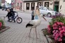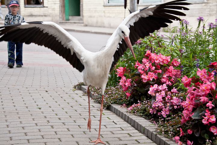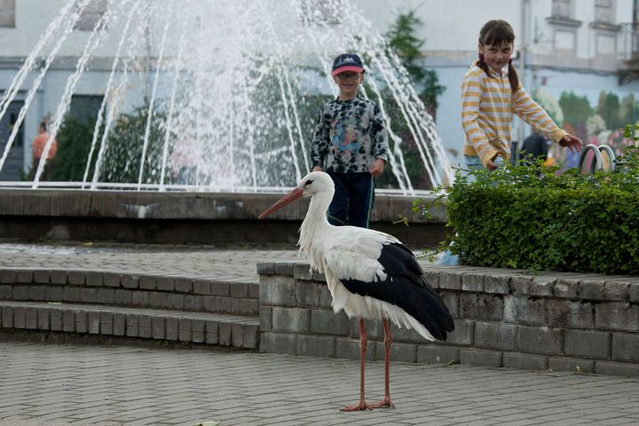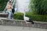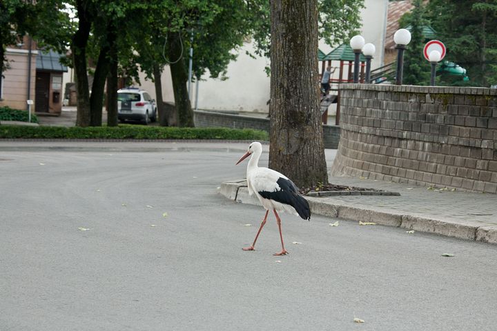 Taču šorīt stārķis pārcēlies uz Tukuma centru, Brīvības laukumu. Tas pastaigājas gar policiju, apstādījumiem, strūklaku. Putns izskatās labā kondīcijā, pašapzinīgi pastaigājas un pieņem dažādus tukumnieku cienastus. Neskatoties uz to, ka putns šķiet drošs, viņš ar cilvēkiem kontaktējas, uzturoties nelielā attālumā.