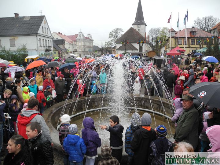 Spītējot lietum un vēsajam laikam 1. maijā strūklaka atkal pamodās. Kas cits viņai atlika – jau 19. gadu, kad tukumnieki mīļi palūdz: “Strūklaka mosties!”, tā mostas. Strūklas kopā ar krāsainiem baloniem traucās augšup – pretī saulei, pavasarim. Ļaudis svētkos priecēja tautas mūzikas ansamblis “Danču spēles” Armanda Krieva vadībā un ekstrēmā velo komanda “Green Trials”.