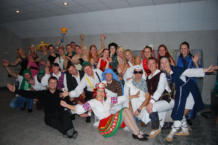 Tomēr iesvētības ar to vēl nebūt nebeidzās, jo oficiālā biedru uzņemšana bija vēl tikai priekšā. Turpinot iesvētību tēmu, uz vakara ballīti visi pulcējāmies saposušies daždažādām valstīm raksturīgos tērpos. Daži iedvesmu vai pat pašu tērpu sarūpējuši kādā no «Svītas» braucieniem. Kompānija – raibu raibā, gan no tuvākām, gan pavisam tāltālām zemēm.