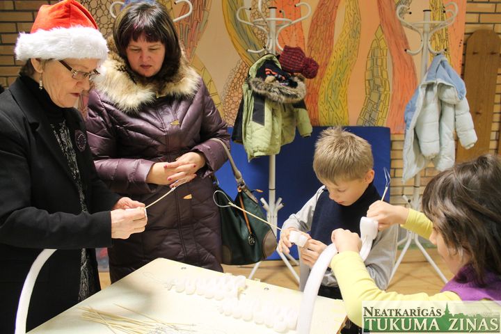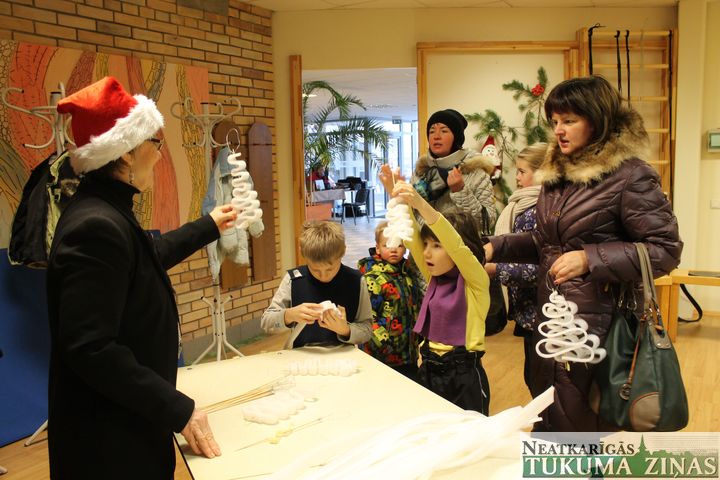 Jāteic, rotājumus bija iespēja ne vien eglē iekarināt, bet Tukuma ledus hallē kopā ar Mākslas skolas skolotājiem pašiem arī izgatavot. Šīs dienas uzdevums vienkāršs – no koka iesmiņa, stieplītes un siltināmā materiāla izgatavot eglīti.