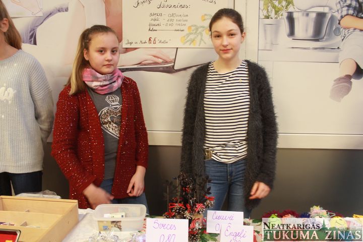 No parafīna atlikumiem gatavotas sveces, dāvanu kārbiņas no kartona, grāmatzīmes un rotas, kā arī eglītē karināmi eņģelīši no stikla pērlītēm – šie un vēl citi roku darbi bija apskatāmi un nopērkami 5. decembra tirdziņā tirdzniecības centrā «Tukums». Darbu autori – 6. un 7. klases skolēni – Tukuma 2. vidusskolas mācību uzņēmumu dalībnieki.