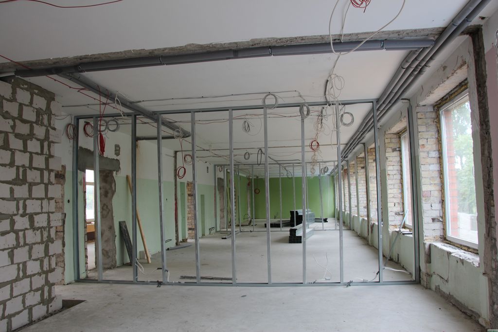 Tukšas logu ailas, demontēts jumta segums un būvniecība skolas pagalmā – šādu skatu daļēji aizsegtajā Tukuma 2. vidusskolas teritorijā var redzēt garāmgājēji un tuvāko daudzdzīvokļu māju iedzīvotāji. Taču, lai klātienē pārliecinātos, kādus darbus piecu mēnešu laikā SIA «Bildberg» ēkā jau ir paveicis, to 28. jūlijā lūkojām kopā ar uzņēmuma projektu vadītāju Tomu Pavilēnu un būvdarbu vadītāja vietnieku Andri Jutinoviču.