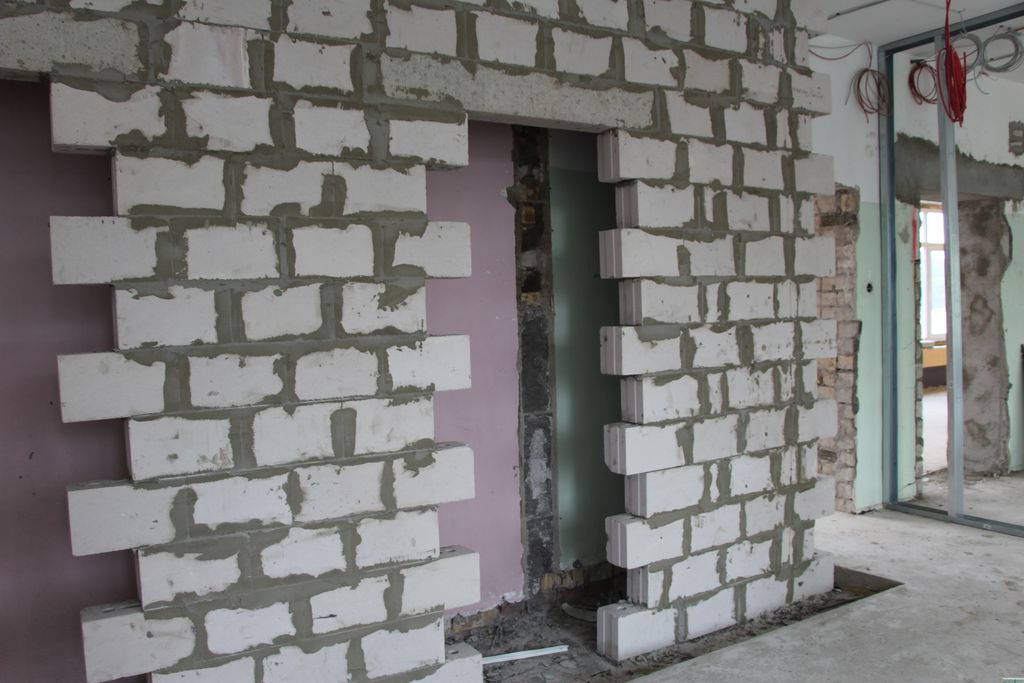 Ēkai šobrīd izņemta daļa pagrabstāva logu, kas, kā skaidroja T. Pavilēns, ar aktu tiek nodoti pasūtītājam – Tukuma novada domei. Vaicāti, vai tiešām nepieciešams mainīt logus, par ko redakcijai jau neizpratni bija izteikuši arī iedzīvotāji, uzņēmuma pārstāvji skaidroja, ka logi bija jāmaina, lai sasniegtu projektā noteikto energoefektivitāti jeb siltuma ietaupījumu un attiecīgi – pašvaldība varētu piesaistīt Eiropas Savienības finansējumu: “Šie logi tiešām ir jau nokalpojuši, turklāt tie vietām bija tik slikti iestrādāti, ka labi redzamas lielas spraugas starp logu un sienām. Turklāt, lai ievērotu drošības nosacījumus, gaiteņos logi tiks pacelti augstāk, lai sienas augstums sasniegtu 90 cm. Tas nepieciešams, lai bērni skrienot neizsistu logus. Drošības nolūkos gaiteņu logi būs ar mazākām vērtnēm, lai nebūtu, kā līdz šim, kad gaiteņos bija iespējams atvērt lielos logus.” Vienlaikus, kā redzams pēc sienu marķējumiem, tiks palielinātas durvju ailes, kuru augstums vietām nesasniedz normatīvu.