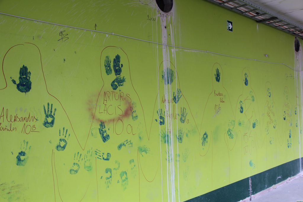 Izstaigājot skolu, šur un tur sienās pamanījām plaisas. Būvuzņēmuma pārstāvji skaidroja, ka tās visas tiks aiztaisītas, bet vienlaikus – arī kontrolētas: “Par plaisām starpsienās satraukuma nav, taču uz tām, kas ir nesošajās sienās – bet tādu nav daudz – ir uzklāta ģipša kārta, kas parāda, vai plaisāšana turpinās. Līdz šim tā nav noticis. Vietām uz tām uzlikti īpašie marķieri, kas kontrolē plaisu kustību. Šobrīd nekādas izmaiņas nav konstatētas, bet, ja būtu, mēs pieaicinātu konstruktorus, kam būtu jārisina šī problēma.”