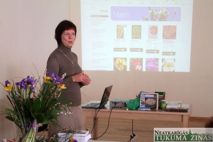 Sestdien, 14. martā, Tukuma ledus hallē uz tradicionālo pavasara pasākumu, ko saviem lasītājiem organizējam mēs – «Neatkarīgo Tukuma Ziņu» veidotāji – pulcējās dārzkopji. Pirms lielā darbu cēliena vēl nedaudz laika, lai uzkrātu zināšanas, uzzinātu par jaunumiem. Dārziem aizvien piestāv mūzika. Tāpēc pasākumu ar skanīgām dziesmām atklāja Slampes pagasta un zināmā mērā arī mūsu redakcijas vokālais ansamblis «Gamma» (tajā dzied trīs mūsu darbinieces) Ineses Beigates vadībā. Un, kad visi bija iekārtojušies pie galdiņiem pie kafijas un tējas krūzītēm un SIA «Kārumiņš» firmas maizītēm priekšā, dārzkopju sarunas varēja sākties. Šoreiz bijām uzaicinājuši SIA «Dārza laiks» pārstāvjus no Jūrmalas – Līgu, Katrīnu un Normundu Haukus. Izrādās, ka viņi savulaik bijuši tukumnieki, 2011. gadā nodibinājuši savu dārzkopības firmu un Līga apguvusi dārzkopja profesiju. «Dārza laiks» Nodarbojas ar sēklu un stādu tirdzniecību, dārzu kopšanu un ierīkošanu.
