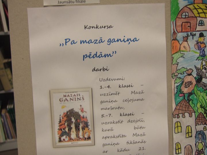 Konkursā «Pa mazā ganiņa pēdām» 1.–4. klašu skolēnu uzdevums bija izlasīt vienu no grāmatām – vai nu «Mazais ganiņš un viņa brīnišķais ceļojums», vai «Mazais ganiņš un viņa brīnumainie piedzīvojumi» – un izveidot mazā ganiņa ceļojuma maršrutu, bet 5.–7. klašu skolēni rīmēja pantus un attēloja mazā ganiņa apgrozīšanos 21. gadsimtā starp kolām, aifoniem un citām mums tik ierastām, bet viņam pilnīgi svešām lietām.