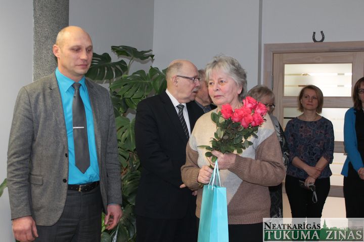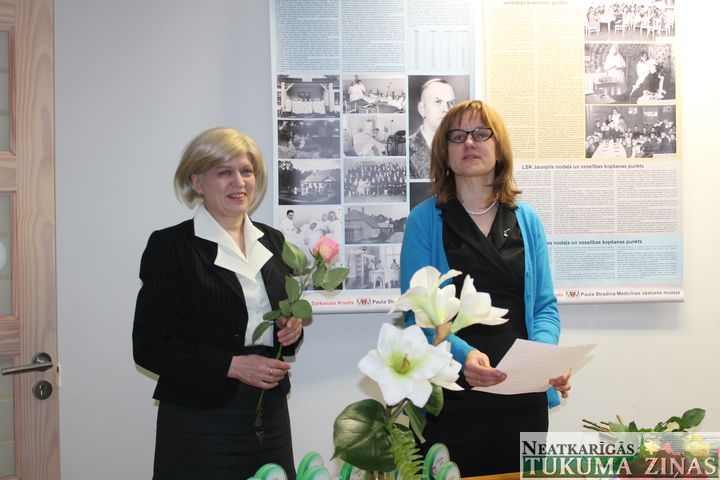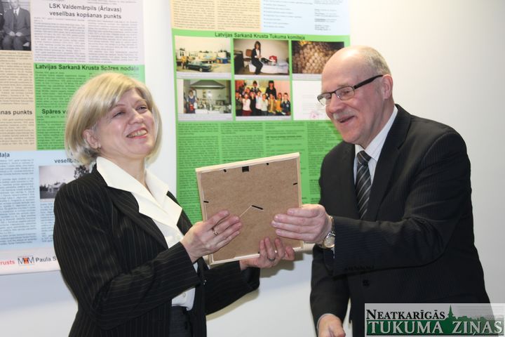 Atklāšanas reizē iespēju pateikties ilggadējiem sadarbības partneriem un atbalstītājiem izmantoja arī LSK Tukuma nodaļas vadītāja Gunta Neilande. Un otrādi – ziedus saņēma Tukuma nodaļa, kas šogad tā paklusāk atzīmējusi jau 20. gadadienu kopš darbošanās ēkā Kurzemes ielā 5A. Pēc izstādes atklāšanas, kurā piedalījās arī LSK ģenerālsekretārs Uldis Līkops un izstādes kurators Mārtiņš Vespers, jau daudz neformālākā gaisotnē domes sēžu zālē klātesošie varēja iepazīties ar LSK darbošanos mūsdienās.