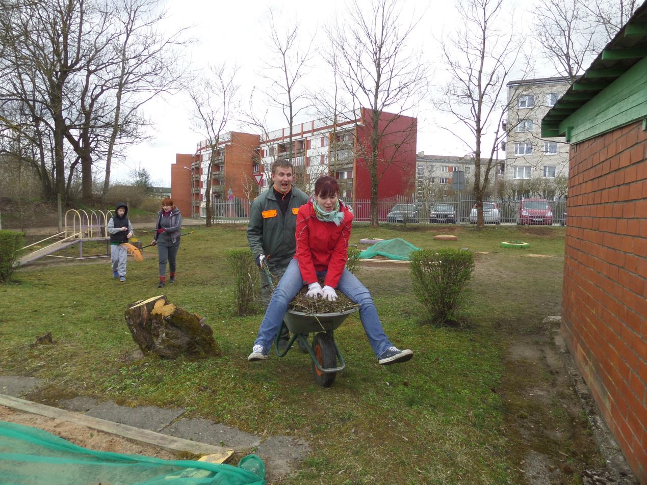 Mēs visi kopā paveicām ne tikai redzamo – sakopām apkārtni, bet arī mācījām bērnus saudzēt, uzturēt tīru un kārtīgu savu tuvāko apkārtni. Turpinājām iepriekšējā gadā aizsākto pāraugušo ”krēķu” un citu krūmu izzāģēšanu. Trīs grupas tika pie jaunām apmalēm smilšu kastēm. Ar talcinieku palīdzību trijos laukumiņos tika demontētas senās rotaļu ierīces, lai atbrīvotu vietu jaunajām. «Apelsīniņa» grupas vecāki nolēma šai dienā atjaunot grupas krāsojumu un īstenoja to. Un vēl, un vēl, un vēl…