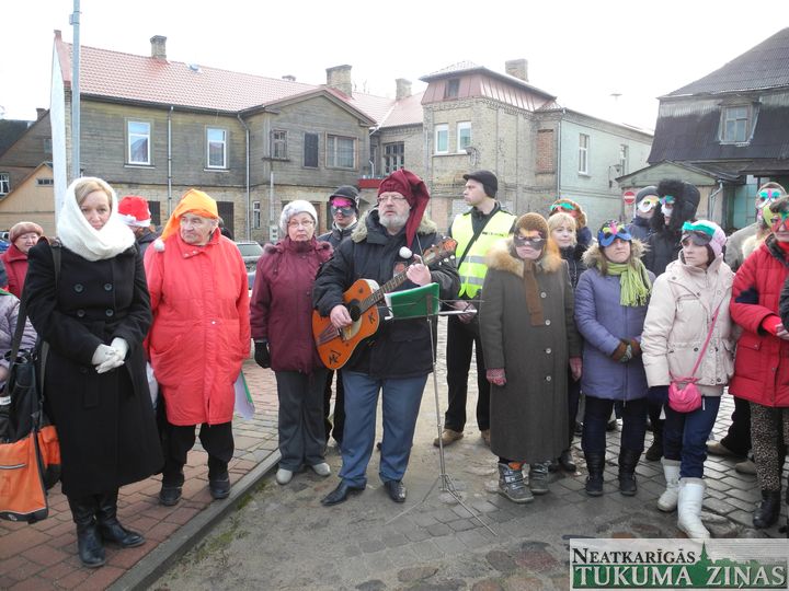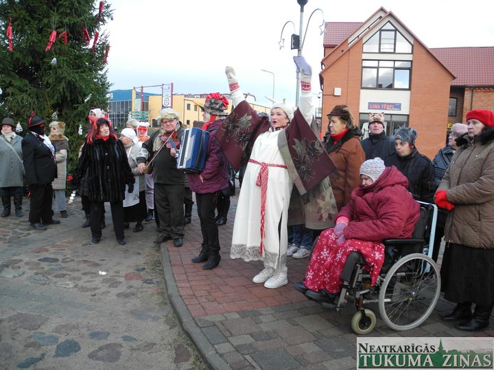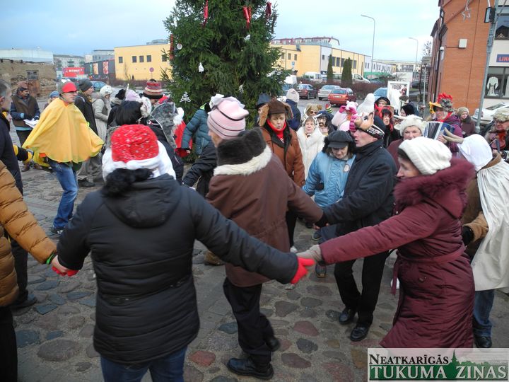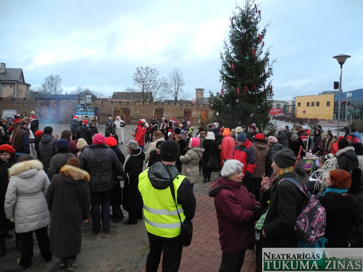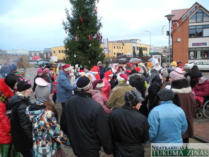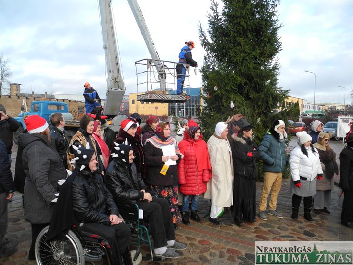 Tukuma dienas centra «Saime» ļaudis trešdien, 17. decembrī, Tukuma Katrīnas laukumā draugiem no visas Latvijas Ziemassvētku egli un tusiņu uzsauca. Un pulks draugu arī atbrauca, dāvanas sev līdzi atveda.
