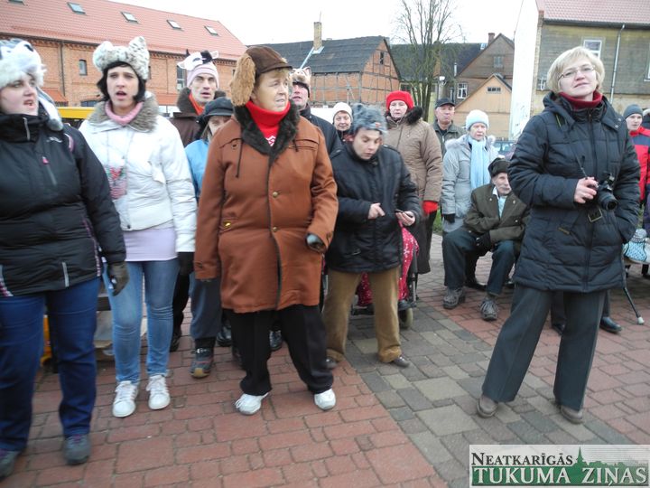 Tukuma dienas centra «Saime» ļaudis trešdien, 17. decembrī, Tukuma Katrīnas laukumā draugiem no visas Latvijas Ziemassvētku egli un tusiņu uzsauca. Un pulks draugu arī atbrauca, dāvanas sev līdzi atveda. Zem egles lika. Cienāja viens otru. Priecīgas Ziemassvētku dziesmas dziedāja. Sniega nav, bet gaismiņa uz mūsu pusi jau griežas! «Saimes» un «Saimītes» ļaudīm un viņu draugiem tā visvairāk vajadzīga. Svētku rīkotāja Sarmīte Konšteine pati kazas tērpā (nākamais taču Kazas gads) pie egles ļaužu pūlī jestru garu uzturēja. Eglīti ar pašu darinātiem spīguļiem Ilgvars un Mārcis Jurči rotāja.