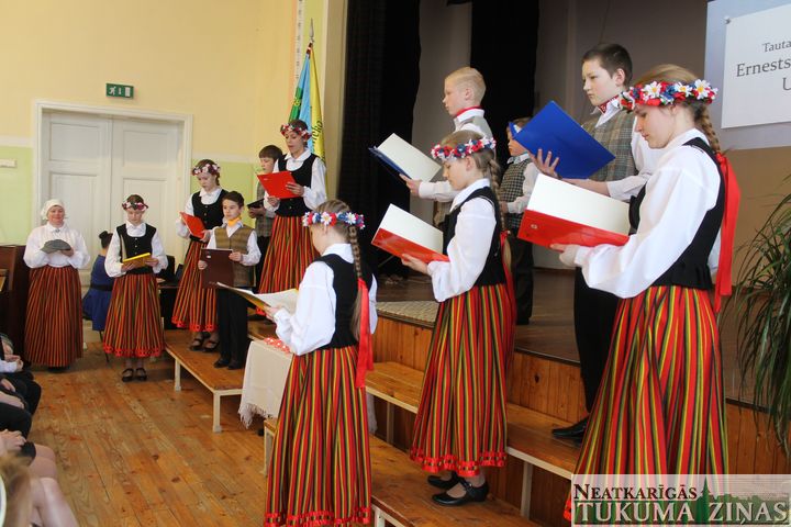 7. aprīlī Tukuma E. Birznieka-Upīša 1. pamatskolas skolēni satikās lielajā skolas zālē un godināja rakstnieku Ernestu Birznieku-Upīti 145. dzimšanas dienā. Skola jau 55 gadus nes rakstnieka vārdu.