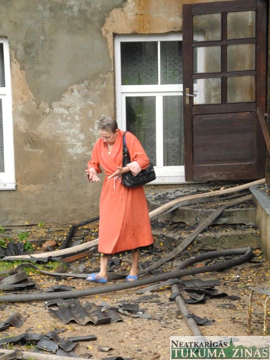 Ugunsgrēka likvidēšanā piedalījās glābēji no Tukuma, Kandavas, Dobeles un Jūrmalas. Kā noskaidrojām uz vietas, izdeguši dzīvokļi 3. – jumta – stāvā. Notikuma vietā strādāja valsts policijas darbinieki un mediķi, taču viņu palīdzība neesot bijusi nepieciešama. Sastaptie ļaudis stāstīja, ka 3. stāva iedzīvotājam Intam ugunsnelaimē sadedzis suns. Redzējām arī, ka no ap 9.00 no ēkas izved kādu iereibušu vīru. Patlaban Tukuma novada domē notiek sanāksme, kurā tiek spriests par iespējamo sociālo palīdzību šīs mājas iedzīvotājiem.