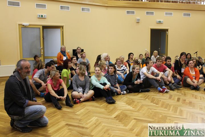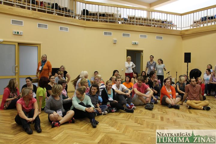 Pirms gada – 2012. gada vasarā – līdzīgās nodarbībās piedalījās vairāk nekā 300 bērnu no Tukuma un citiem novadiem, gūstot pieredzi un dažu dienu laikā atraisoties dejai, dziesmai un draudzībai. Šonedēļ – no pirmdienas līdz trešdienai – līdzīgās nodarbībās iejūtas skolotāji, jaunieši un citu profesiju pārstāvji.