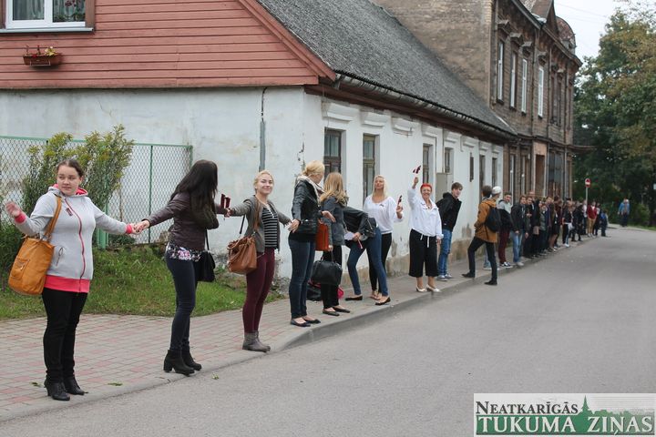 Ceturtdien, 11. septembrī, Tukuma ielās notika sadošanās rokās, kurā piedalījās Tukuma skolu un Tumes vidusskolas skolēni.