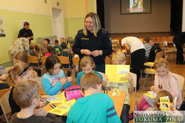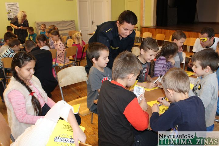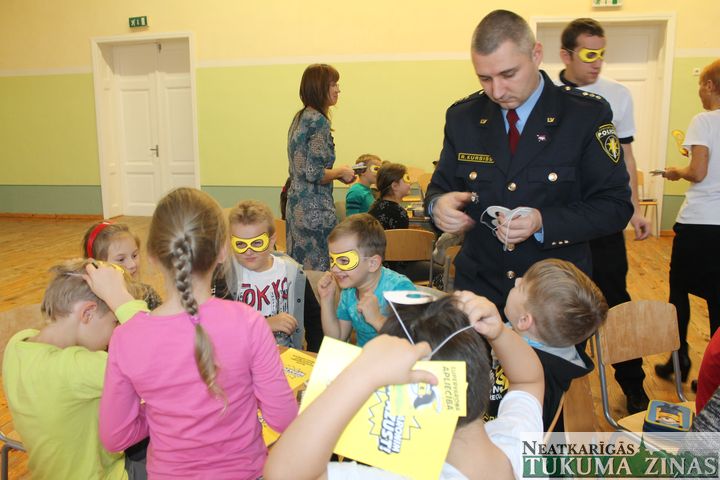 9. novembrī Tukuma E. Birznieka-Upīša 1. pamatskolas zāle bija mazu supervaroņu piepildīta. Bet, kā zināms, lai par supervaroni kļūtu, vispirms jāpieveic ļaundari – pat ja tie ir tikai iedomāti, kā tas iegadījās šajā reizē. Un kā to paveikt, to skolas zālē sanākušajiem skolnieciņiem stāstīja Valsts policijas ZRP Tukuma iecirkņa policisti.