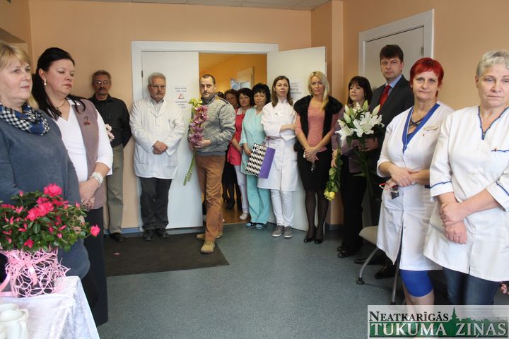 3. martā Tukuma slimnīcas Bērnu nodaļa svinēja svētkus un uzņēma viesus – kolēģus no citām nodaļām, kas bija atnākuši apskatīt nupat kā izremontētās palātas. Abas palātas un tualete starp tām ieguvusi pavasarīgi košu krāsojumu zaļganā, rožainā un gaiši violetā tonī.