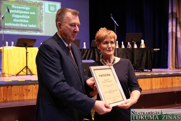 Nominācijā «Izcilas sadarbības piemērs» Tukuma novada domes priekšsēdētājs Ēriks Lukmans sveica Tukuma 2. vidusskolas vecāku biedrības valdes priekšsēdētāju Aiju Neimani – par mērķtiecīgu dažādu iniciatīvu īstenošanu, par atbalstu skolai un skolas audzēkņiem, uzlabojot materiāli tehnisko bāzi un palīdzot rīkot dažādas nodarbības. Biedrības «ASNI 3139» valdes priekšsēdētāja Aija Balandiņa paldies saņēma par to, ka viņa aicina ikvienu aktīvi darboties un iesaistīties, nebaidās piedalīties jaunos projektos un kopā ar citiem tos veiksmīgi īstenot. Savukārt nominācijā «Radoša degsme» par aktīvu un radošu darbību cildināja Tukuma Pensionāru biedrības teātra kopu «Kaprīze», kas jau astoto gadu piedalās ne vien novada, bet arī citu pašvaldību pasākumos. Nominācijā «Nesavtīgs ieguldījums un ilggadēja darbība sabiedrības labā» par desmit gadu darbu, aktīvu iesaistīšanos Sēmes un Zentenes pagastu izpētē, kā arī aktīvu līdzdalību sarīkojumu organizēšanā lielo paldies saņēma biedrība «Zentenes izaugsme» (vadītāja Anita Zēne). Šai pašā nominācijā sveica Tukuma Pensionāru biedrības valdes locekli Voldemāru Siliņu, kurš daudzu gadu garumā iedvesmojis seniorus aktīvai dzīvei un iniciējis dažādas aktivitātes, kā arī Tukuma invalīdu biedrības biedri Ligitu Brenci – par dažādu sabiedrisko pienākumu veikšanu un godprātīgu darbu citu labā. Un vēl pašvaldības paldies saņēma Tukuma Pensionāru biedrības valde – par pensionāru piesaisti aktīvai sabiedriskai dzīvei. Savukārt par Latvijas un Polijas sadraudzības veicināšanu, poļu kultūras un vēstures vērtību saglabāšanu balvu saņēma biedrības «Tukuma poļu biedrība» valdes priekšsēdētāja Regīna Bāliņa.