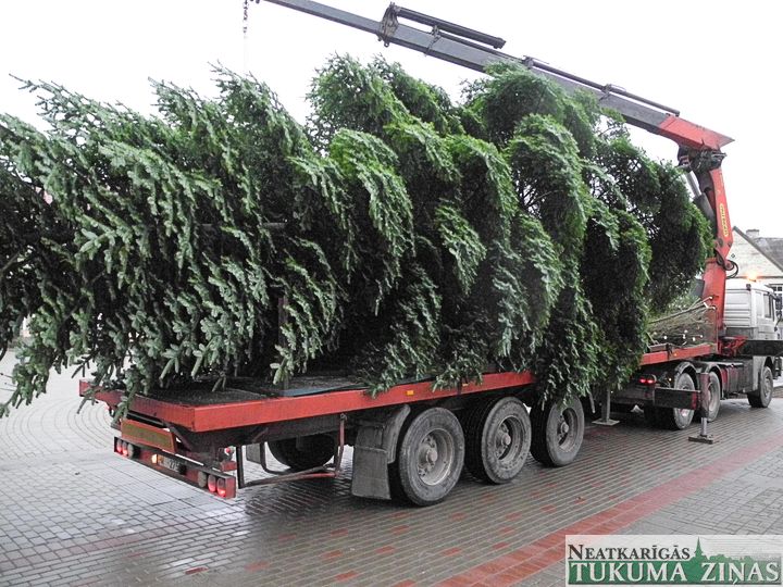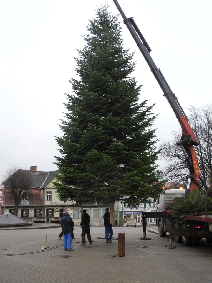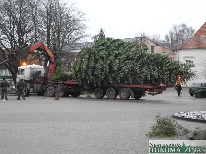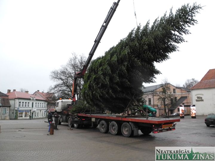 Trešdien, 27. novembrī, Tukumā, Brīvības laukumā cilvēku Ziemassvētku priekam individuālā darba veicējs Ilgvars Jurčs ar Edvīnu Zurģi, Aivaru Driķi un Mārci Jurču pilsētas lielo egli iestatīja.