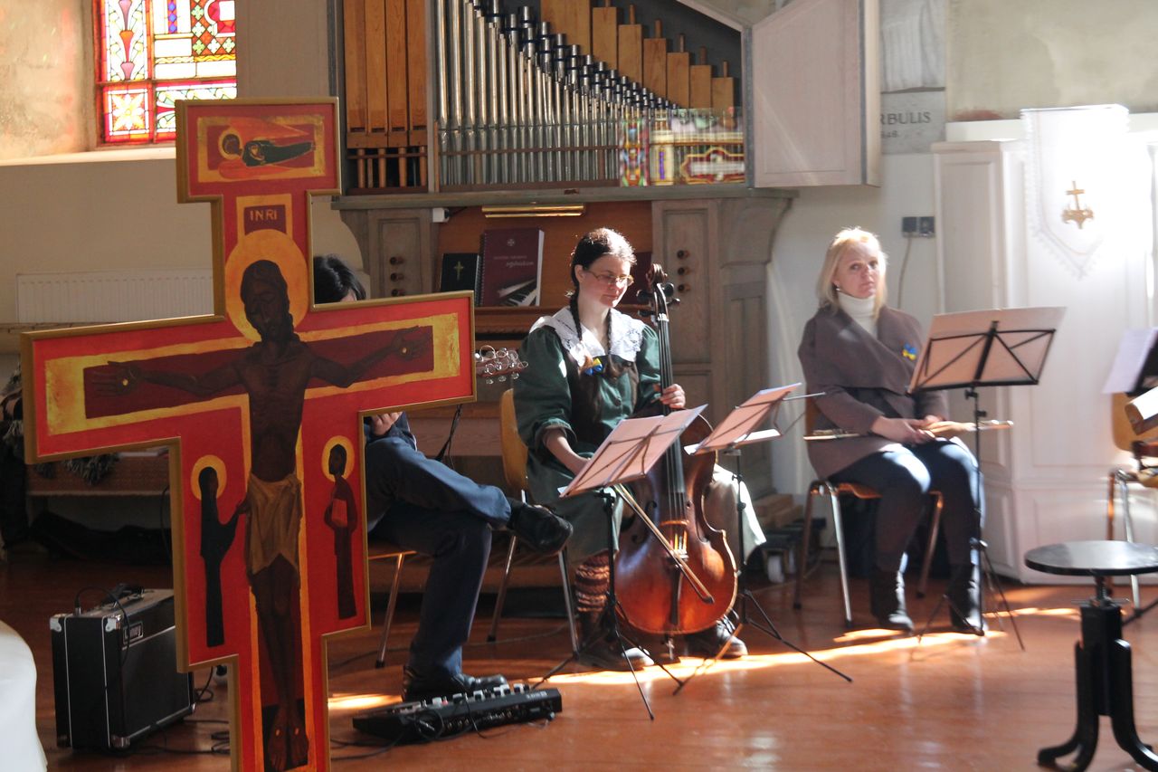 Ekumēnisko dievkalpojumu atklāja Ukrainas himna, kam tūlīt sekoja Latvijas himna kora «Noktirne» un citu dziedošo pasākuma dalībnieku izpildījumā. Jau pēc dievkalpojuma izskanēja neliels, tieši šim pasākumam izveidotas dziedošās apvienības priekšnesums, kā arī pie klavierēm sēdās pasaulslavenais pianists, novadnieks Vestards Šimkus. Jāpiebilst, ka pasākuma laikā bija iespēja arī ziedot Ukrainas aizstāvju un bēgļu atbalstam.