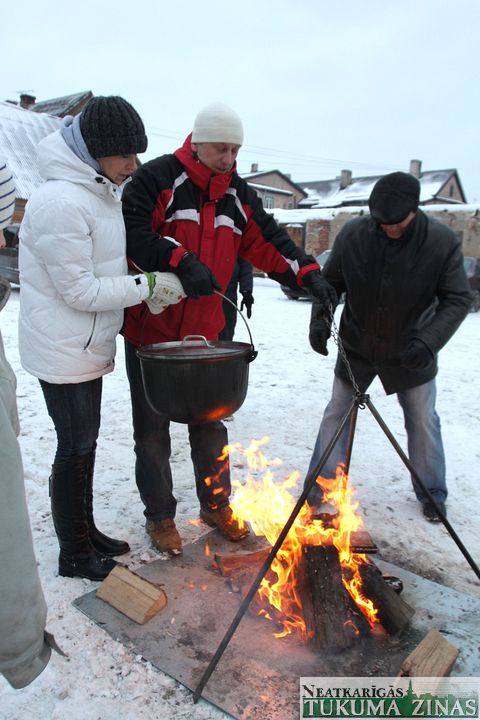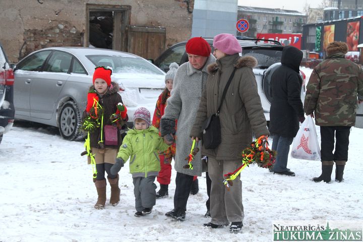 Tukuma ledus hallē bērni, vecāku un vecvecāku mudināti, gatavoja Katrīnas laukuma eglei rotas. Darbiņu viņiem ierādīja Tukuma mākslas skolas skolotāji. Spītējot putenim, visi gāja un kāra, savus gatavotos rotājumus egles zaros. Domnieki un domes darbinieki arī bija klāt.Viņi ļaudis cienāja ar piparkūkām. Vīri prāvu katlu ar tēju atnesa. Uz ugunskura pasildīja, lai dzerot asinis straujāk ķermenī riņķo. Pasākumu ar dziesmām kuplināja folkloras kopa ”Milzkalnieki”.