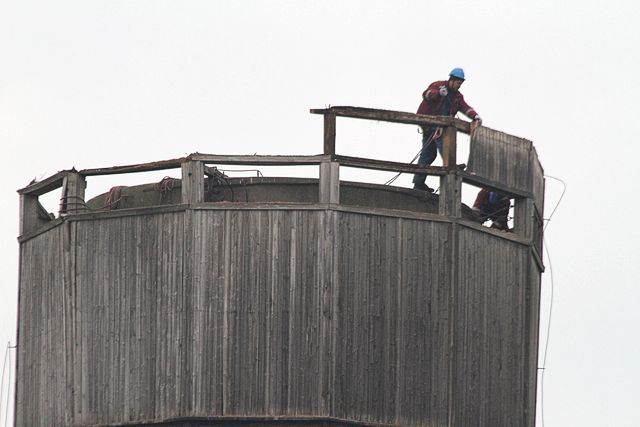 Jau rakstījām, ka Tukuma novada dome panākusi vienošanos ar VAS «Valsts nekustamie īpašumi» par valstij piederošā ūdenstorņa sakopšanu. Pirmdien, 1. novembrī, pamanījām, ka objektā jau notiek darbi.