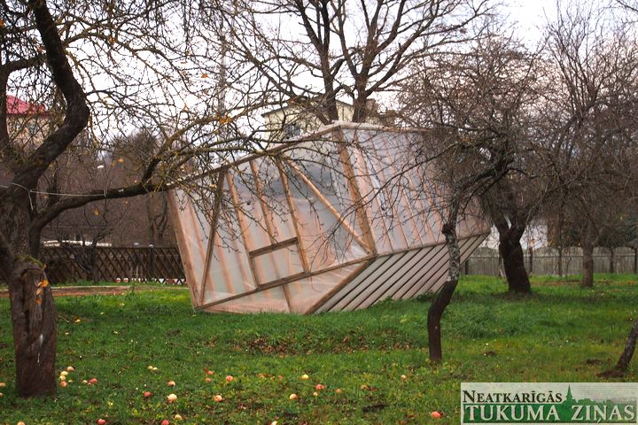Nakts stiprā vēja nodarīties postījumi otrdienas, 29. oktobra, rītā bija manāmi daudzviet. Nolauzti koki un paprāvi koku zari, tāpat kā savu ierasto atrašanās vietu mainījuši atkritumu konteineri, dažādi viegli sadzīves priekšmeti daudzviet pilsētā šķita dabiska parādība. Kandavas tirgus placī stipro vētru nebija izturējusi tirdzniecības nojume, bet Ozolu ielas daudzdzīvokļu māju rajonā, vētra „nocēlusi” pie 11. nama esošās malkas nojumes jumta segumu. Vētra triekusies ar tādu spēku, ka jumts vairākās daļās sadalīts kā nieks un jumta paliekas aizpūstas pat līdz brīvdabas estrādei. Savukārt Liepu ielas privātmājas pagalmā vētra centusies paprāvu koka siltumnīcu „novietot” citviet. Tiesa, vējam to īstenot izdevies daļēji, jo nopietns šķērslis izrādījās līdzās augošās ābeles.