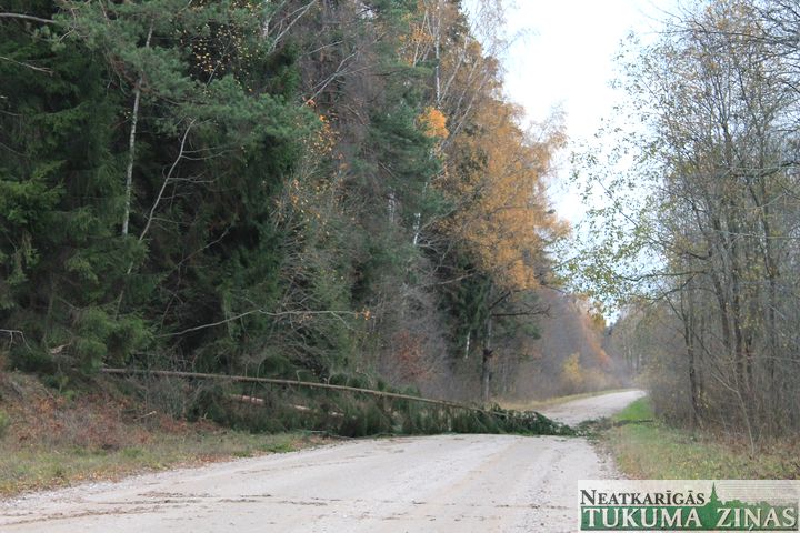 Aptaujājot Tukuma novada pagastu pārvaldniekus, noskaidrojām, ka lielāki vai mazāki postījumi pēc pirmdienas, 28. oktobra, vakara un nakts vētras, konstatēti visos Tukuma novada pagastos. Pūres pagastā vietām nav elektrības, nogāzti koki, taču jau aizvākti. Visvairāk koku nogāzti Jaunsātu pagasta Priedulas kapos. Sēmes un Zentenes pagastā daudzviet nokrituši koki, taču brauktuves no tiem jau ir atbrīvotas un autobusu satiksmei netraucē. Zentenes pagastā sakari ir, bet Sēmē to nav. Vietām nav arī elektrības. Lielāki postījumi nodarīti Plieņu skolas ēkai, kam norauti 4 m jumta kores. Slampē un Džūkstes pagastā nav ziņu par lielām problēmām, vien vietām bijuši elektrības pārtraukumi. Tumes un Degoles pagastā šobrīd visi ceļi ir izbraucami, visi nogāztie koki novākti. Degoles pagasta Vienības ciemā viena elektrolīnija šobrīd tiemk labota, turpat elektrības pārtraukuma dēļ pusotru stundu nav strādājusi katlumāja, taču tagad tās darbība jau atjaunota. Lielākās problēmas ir «Ieleju» māju saimniekiem, kuru mājai norauts pirms dažiem gadiem liktais jumts. Nekādu palīdzību no pašvaldības saimnieki neesot prasījuši, mājai tikšot likts pagaidu jumts. Viena daļa jumta norauta arī Tumes vidusskolai, turklāt tieši tā pati, kas cietusi vētrā pirms dažiem gadiem un reiz jau tikusi atjaunota. Skolas ēka ir apdrošināta; šobrīd tiek risināts jautājums par jumta atjaunošanu. Irlavas pagastā vētra lielus postījumus nav nodarījusi, vien atstājusi aiz sevis nogāztus kokus, kas jau novākti, taču Lestenē vairāk cietusi Lestenes baznīca, kuras tornim norauta jumta plāksne. Par jumta remontu jau sāktas sarunas ar uzņēmējiem, kas jumtu likuši. Tukumā vētrā cietušas autobusu pieturas Lauktehnikas un Jauntukuma mikrorajonā, kā arī izgāzta siena logu ražošanas uzņēmumā; vēl nogāzti ap 10 koku un nolauzti to zari. Pilsētas centrā vējš bija sagāzis reklāmu plakātus un gleznas Brīvības laukumā, kā arī šur tur norāvis pa šīfera loksnei no jumtiem, bet Pasta ielā automašīnai bija uzkritis zars…