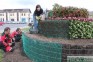 M. Fogele stāstīja, ka lielajā triju stāvu puķu dobē pavisam tiks iestādīti 1300 puķu stādi septiņās krāsās (skaitot gan ziedus, gan lapas), tostarp ledenītes un begonijas. Stādīšanai izmantota īpaša kūdra, kas bagātināta ar mēslojumu un īpašam vielām mitruma uzturēšanai.
