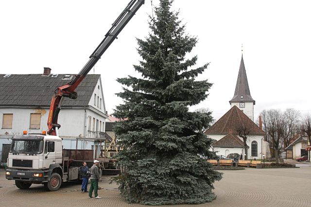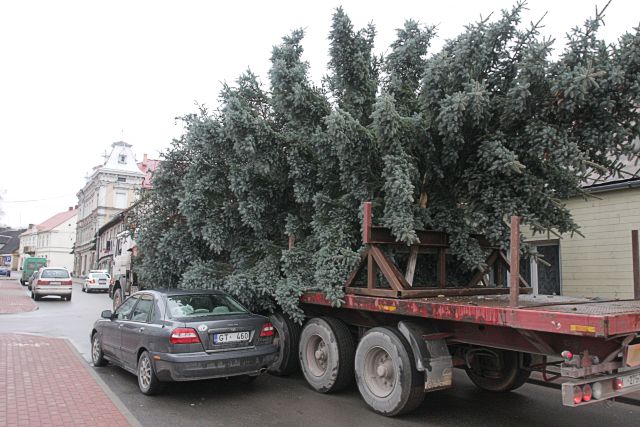 Pilsētas galvenā Ziemassvētku egle šodien atceļoja no Rīgas ielas 36. nama. Egle kopš 1970. gada augusi Jāņa Slīziņa mājas pagalmā. Egli nozāģēja, atveda un uzstādīja Brīvības laukumā individuālā darba veicējs Ilgvars Jurčs.