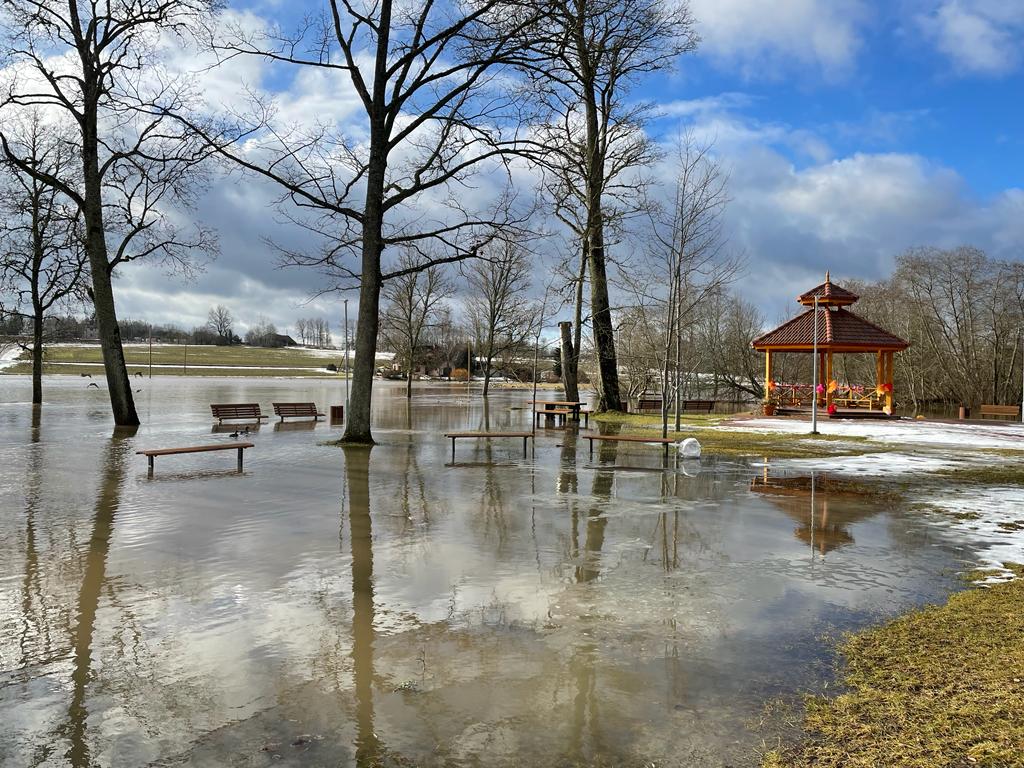 Straujās sniega kušanas rezultātā ūdens līmenis daudzviet ievērojami pakāpies, to skaitā arī Slocenes upē. Kā tika novērots, pie Dzirnavu dīķa Milzkalnē  līmenis šobrīd ir pat kritiski augsts, jo augstuma atzīmes pie slūžām jau atrodas zem ūdens. Tāpat ūdens izlauzis sev ceļu līdz Salas ielas māju pagalmiem, pie Šlokenbekas muižas – aizsniedzies līdz salas soliņu rindai.