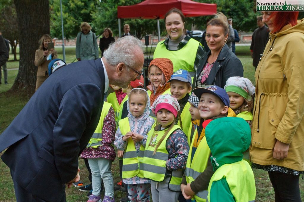 Reģionālās darba vizītes turpinājumā Tukuma novadā Valsts prezidents apmeklēja bioloģisko zemnieku saimniecību “Karotītes”, SIA “M.P.Socks”, pasaules kultūru telpu Tukumā “Tukku magi”, kā arī tikās ar Tukuma novada pašvaldības deputātiem.