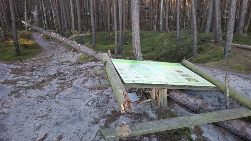 Savukārt Gausajā jūdzē vēja brāzmas nebija izturējis informatīvais stends.