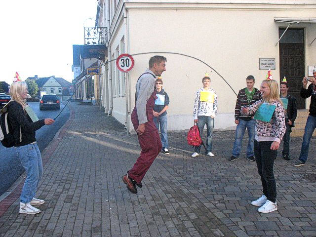 Jau no deviņiem rītā Zemgales vidusskolas 12. klases skolēni un skolotāja Svetlana Brasnujeva Tukumā rīko iesvētīšanas pasākumu 10. klasei.
