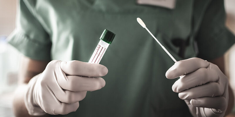 nurse holds a swab for the coronavirus / covid19 test